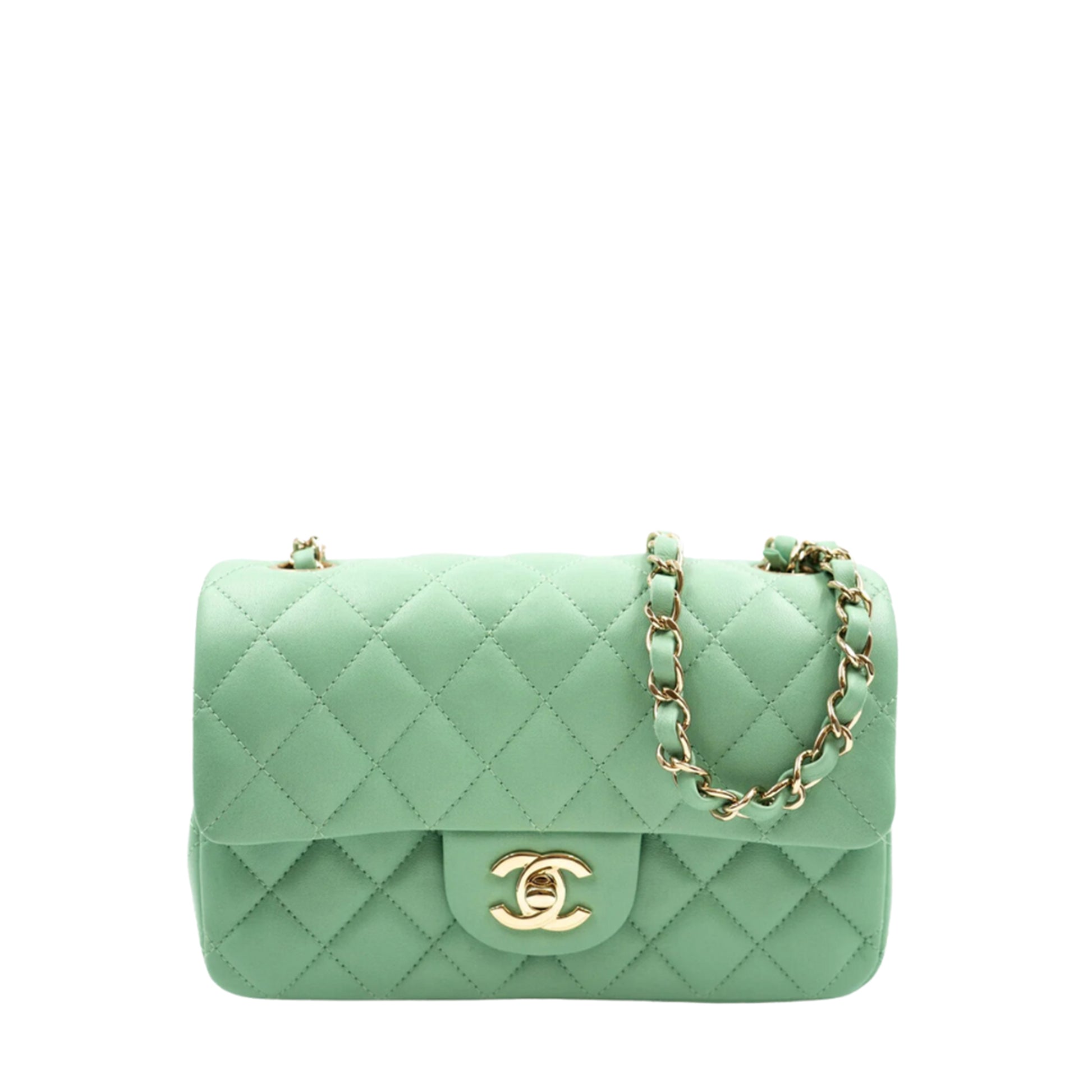 BOLSO DE PIEL VERDE AGUA MARINA Y DETALLES DORADOS