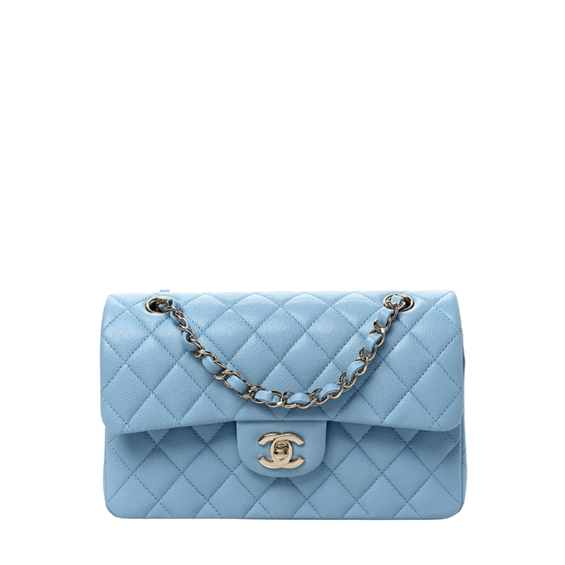 BOLSO DE PIEL AZUL CLARO CON DETALLE DORADO Y CADENA