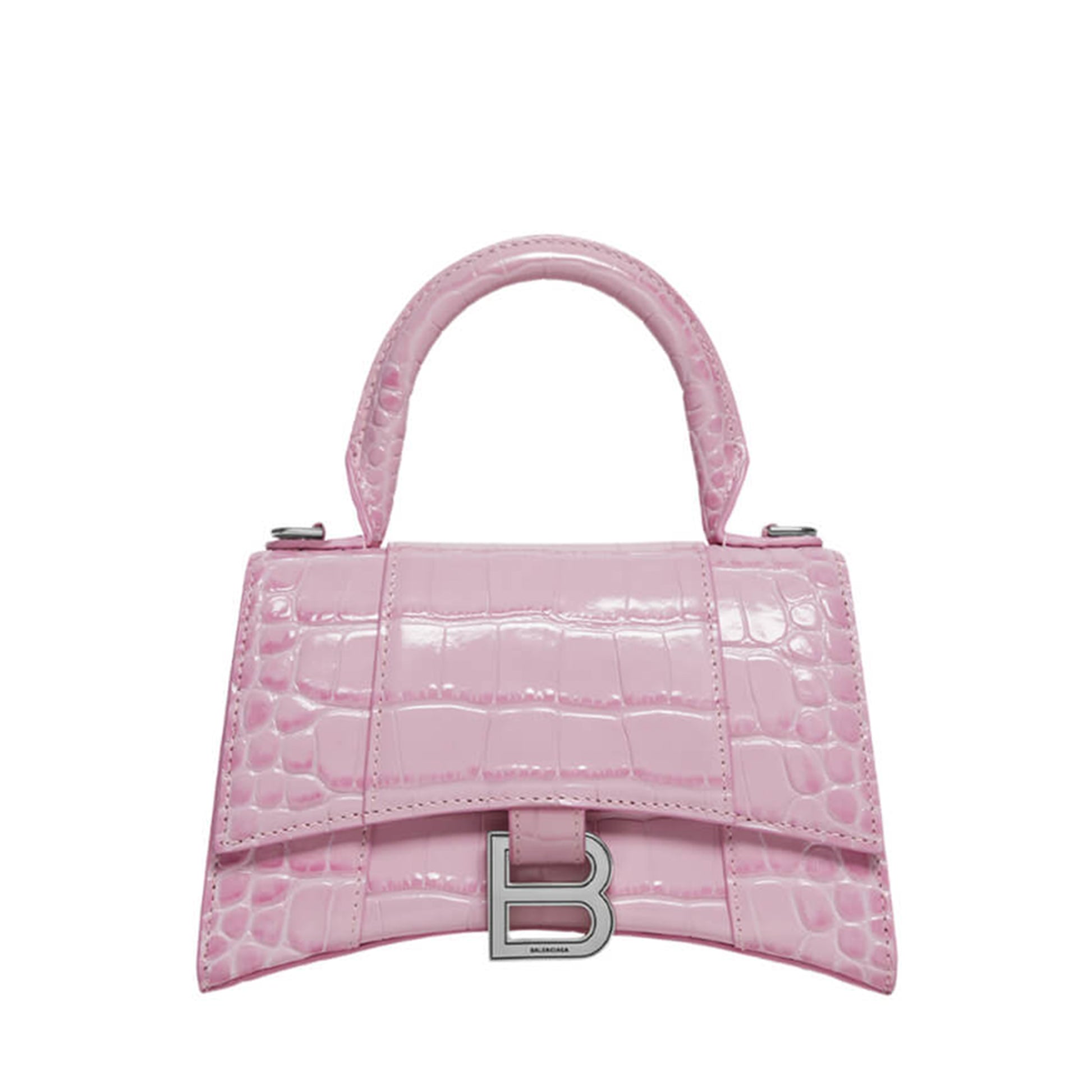 CARTERA MINI ¨HOURGLASS¨ DE PIEL EFECTO COCODRILO, UN ASA EN LA PARTE SUPERIOR, CORREA DE PIEL AJUSTABLE Y EXTRAIBLE, CIERRe MAGNETICO, HEBILLA CON LOGOTIPO ¨B¨ DE LA FIRMA