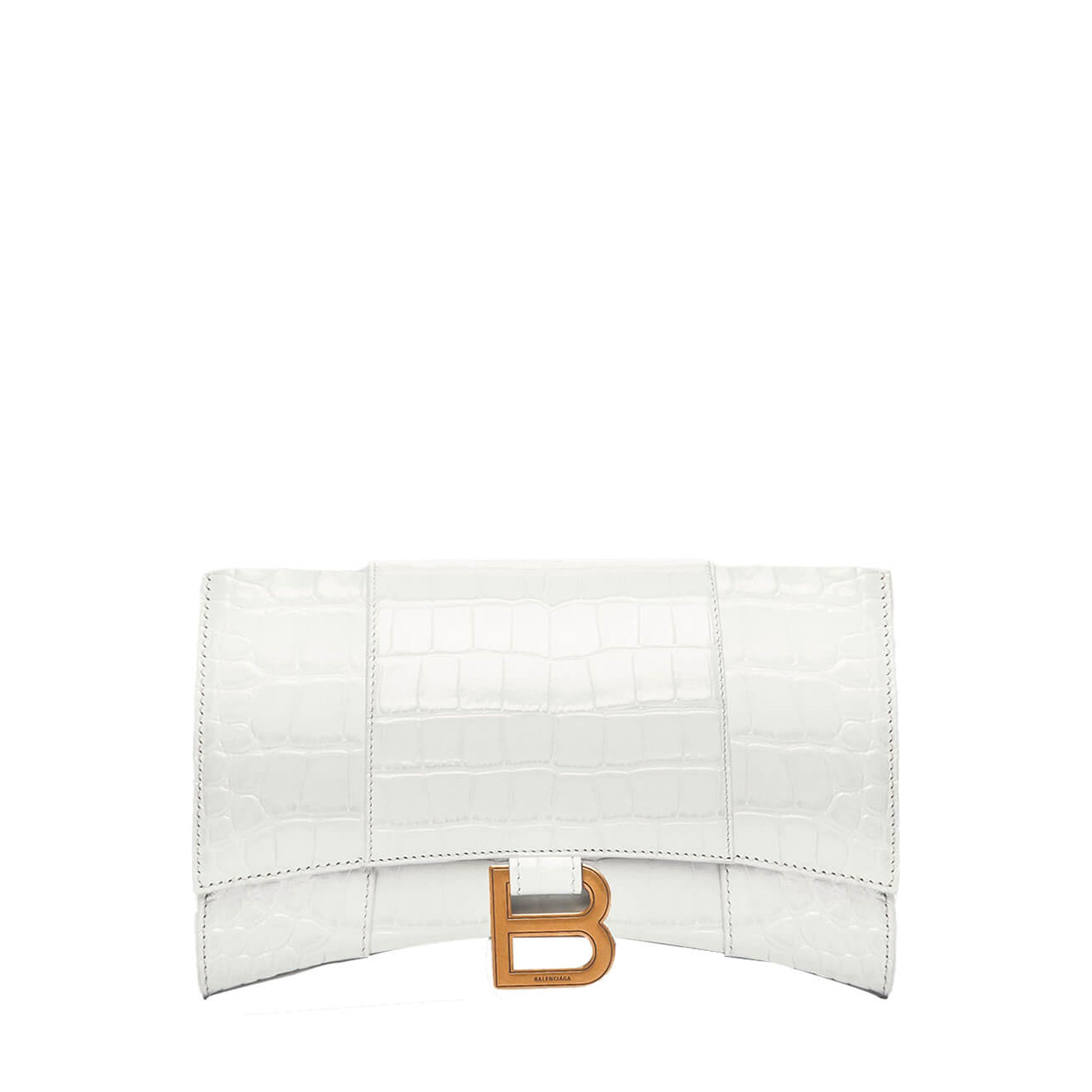 CARTERA MEDIANA ¨HOURGLASS¨ DE PIEL EFECTO COCODRILO, CORREA DE CADENA EXTRAIBLE, CIERRE MAGNETICO, HEBILLA CON LOGOTIPO ¨b¨ DE LA FIRMA