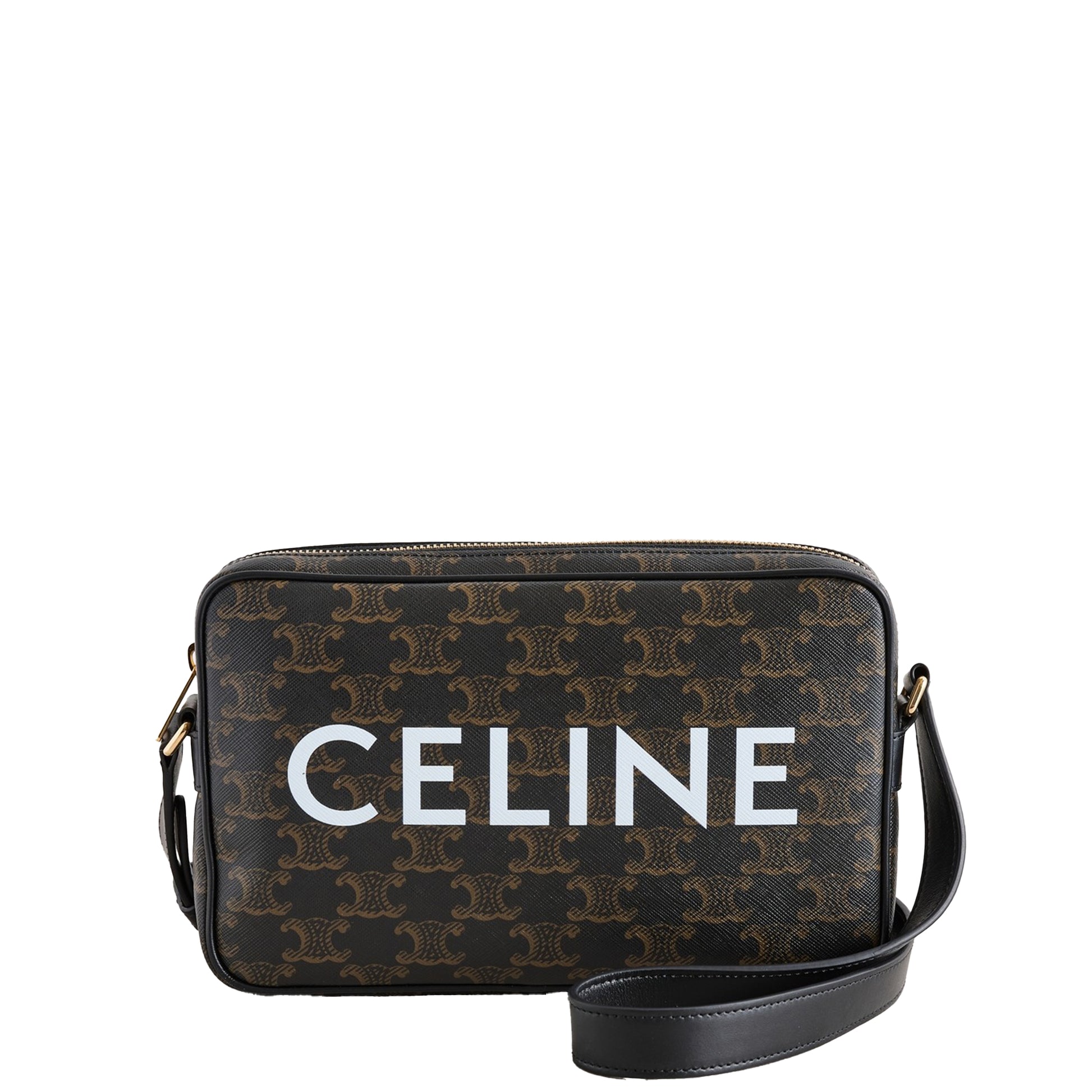 BOLSO BANDOLERO ¨TRIOMPHE SHOULDER BAG¨ EN PIEL TRIOMPHE (ESTAMPADO) CLASICO DE LA FIRMA, CORREA EN PIEL AJUSTABLE, CIERRE DE CREMALLERA, Y ESTAMPADO ¨CELINE¨ EN BLANCO EN LA PARTE DELANTERa.