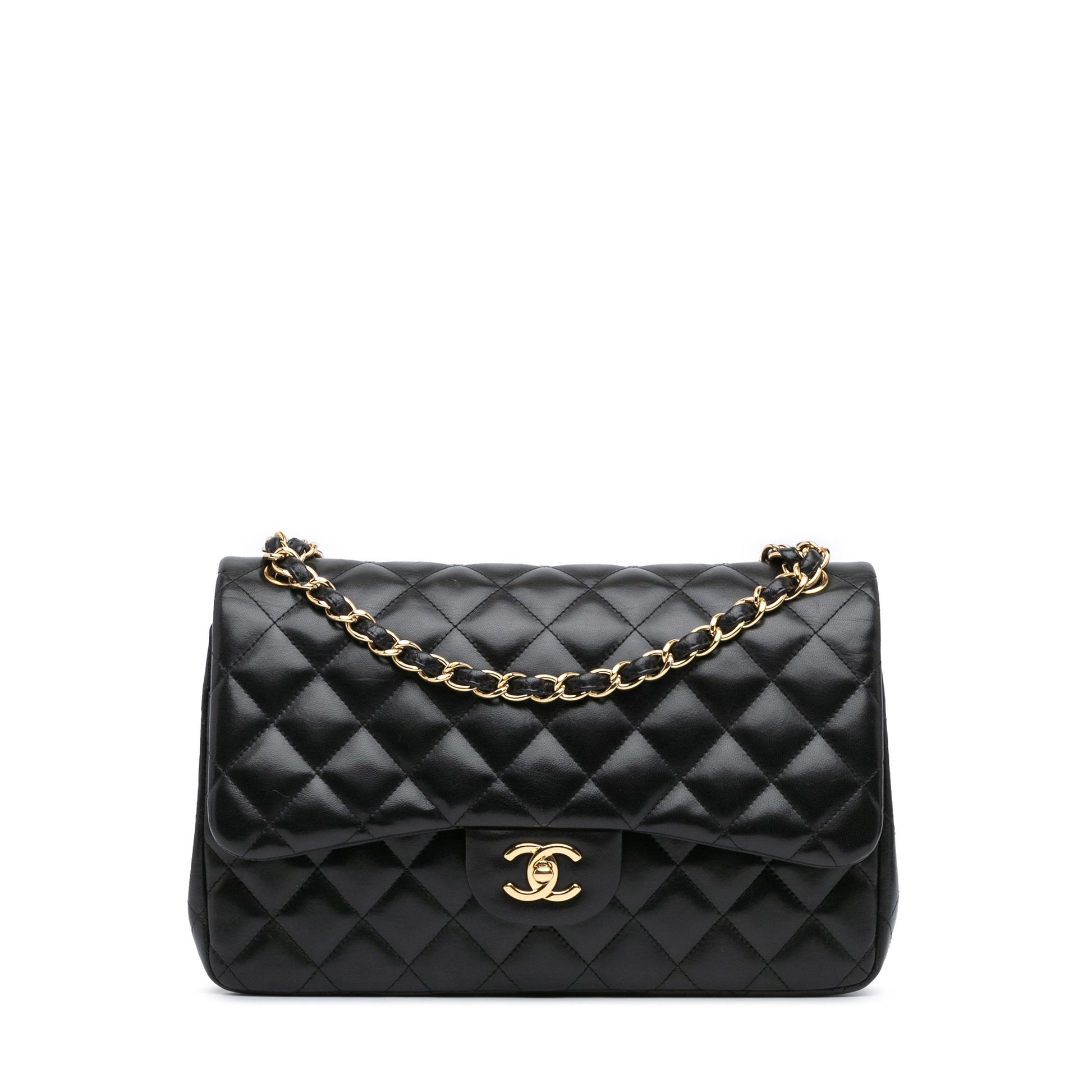 CARTERA CHANEL ¨DOUBLE FLAP¨ EN PIEL NEGRO ACOLCHADO, CORREA DE CADENA DESLIZANTE PLATEADO, CIERRE CON HEBILLA ¨CC¨ GIRATORIo
