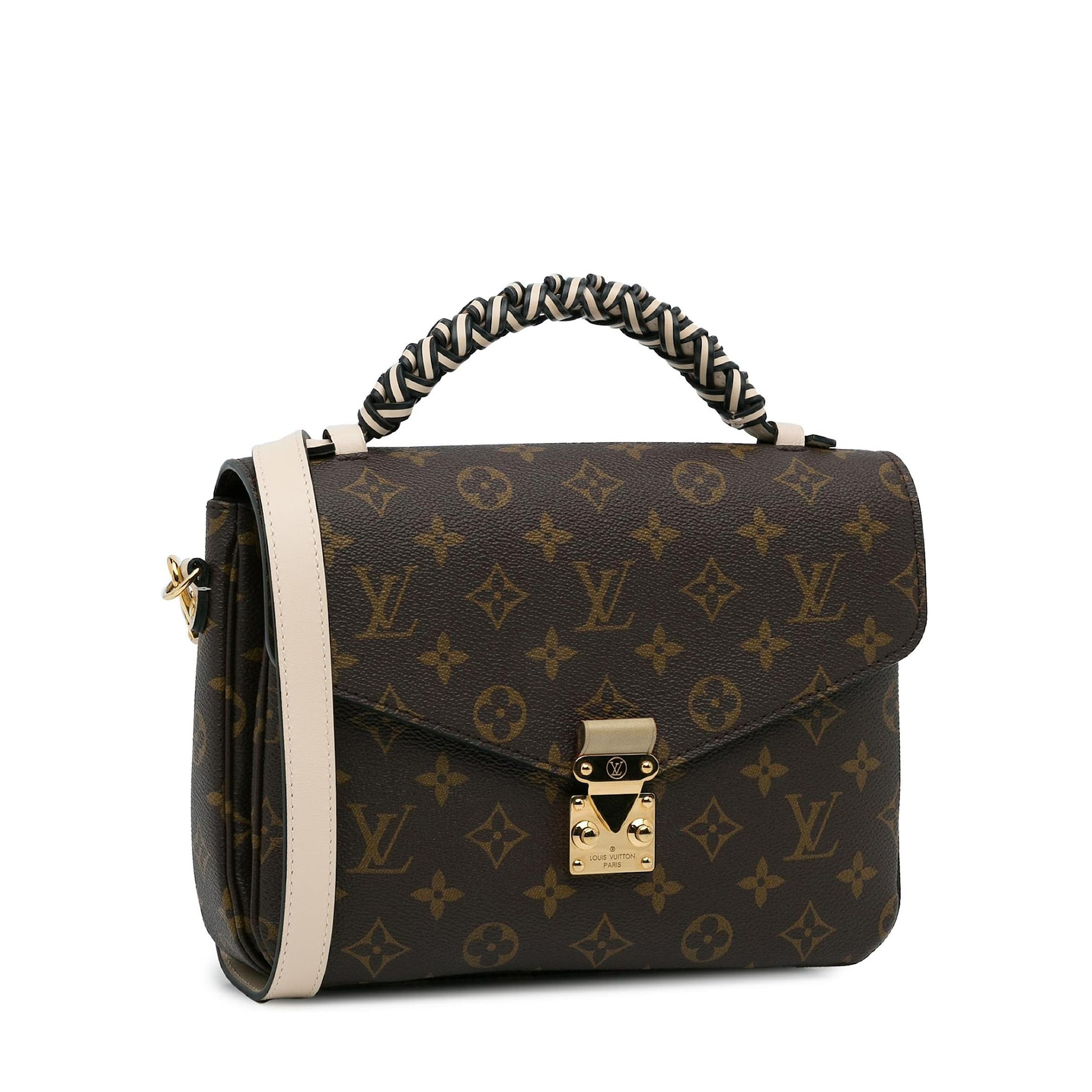 BOLSO ¨POCHETTE MÉTIS¨ MARRON CON MONOGRAMA CLASICO DE LA FIRMA, ASA UNICA SUPERIOR CON DETALLES Y UNA CORREA EXTRAIBLE PARA LLEVARLA DE HOMBRO O CRUZADA. CIERRE DE BROCHE EN DORADO ¨S-LOCK¨