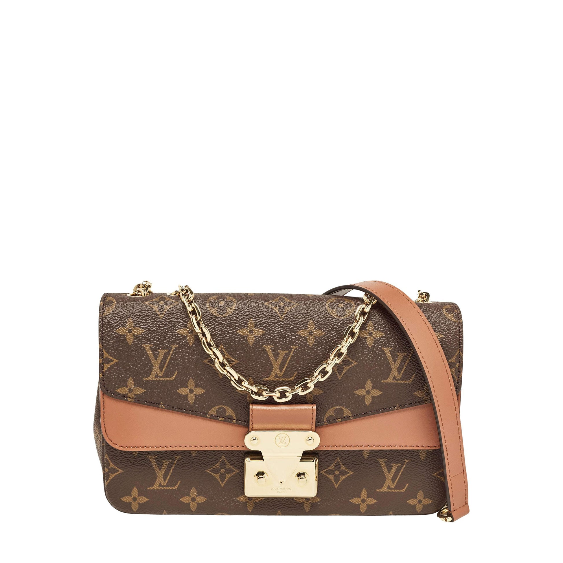 CARTERA ¨MARCEAU¨ MARRON CON MONOGRAMA CLASICO DE LA FIRMA, CADENA DESLIZANTE EN DORADO CON ALMOHADILLA EN PIEL. CIERRE DE BROCHE ¨S-LOCK¨