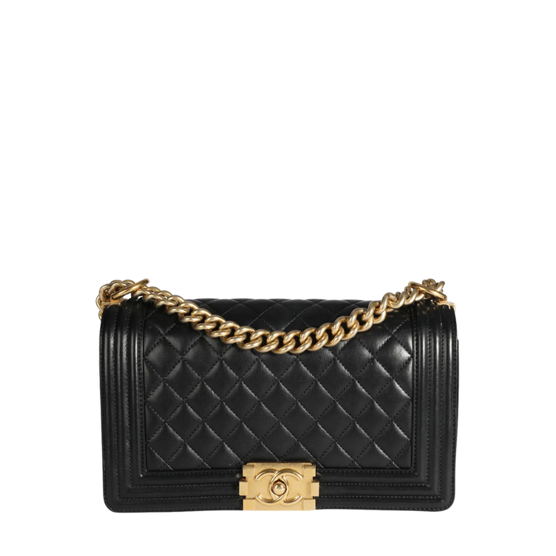 La Cartera Chanel Boy Bag es una pieza única de lujo. Fabricada en piel de primera calidad, su parte acolchada y correa de cadena dorada deslizante le confieren un look moderno y fresco. También cuenta con una parte de piel ajustable y cierre con hebilla ¨CC¨ botón en dorado para asegurar sus pertenencias. Una pieza perfecta para cualquier cita.