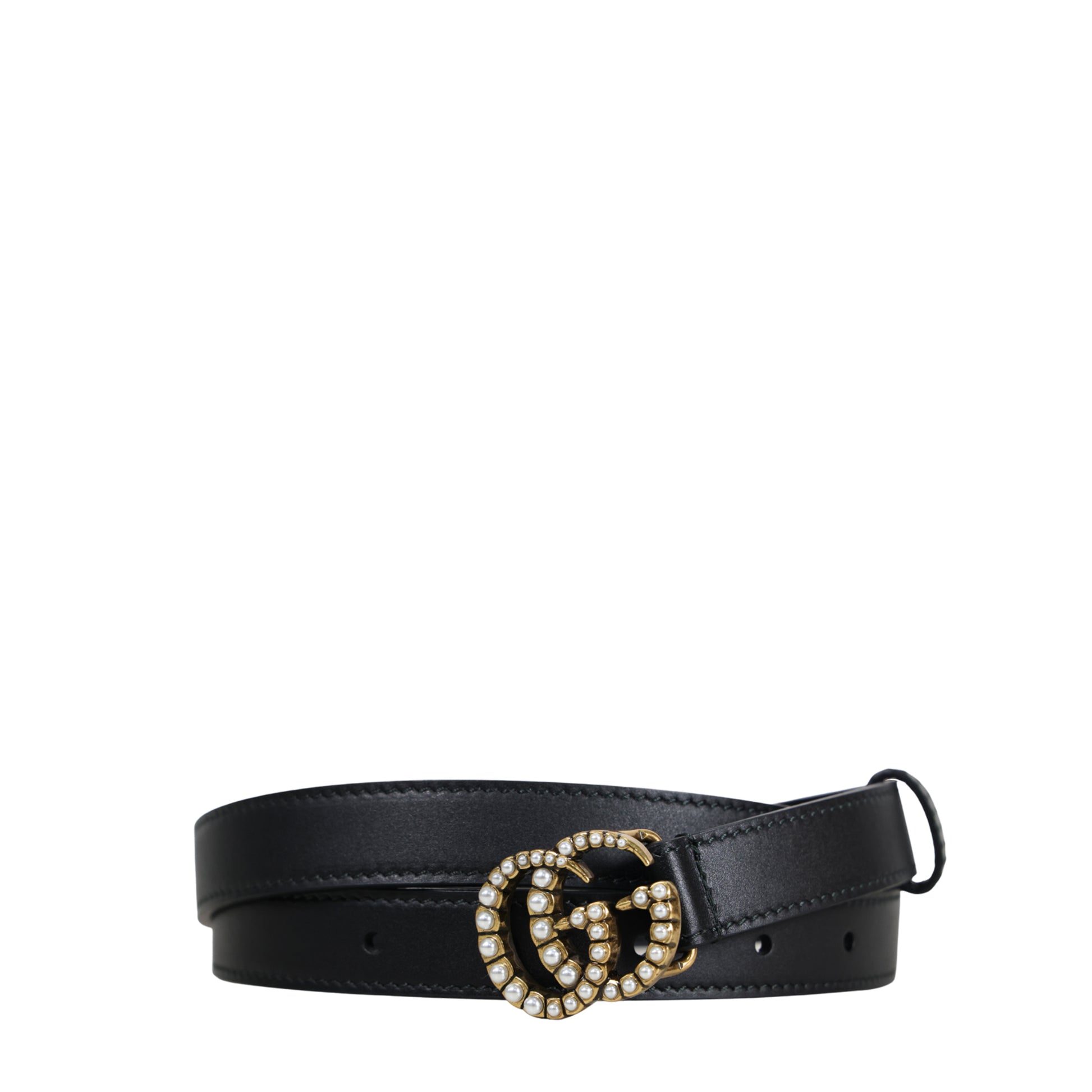 CINTURÓN DE PIEL NEGRA Y BROCHE DE PERLAS