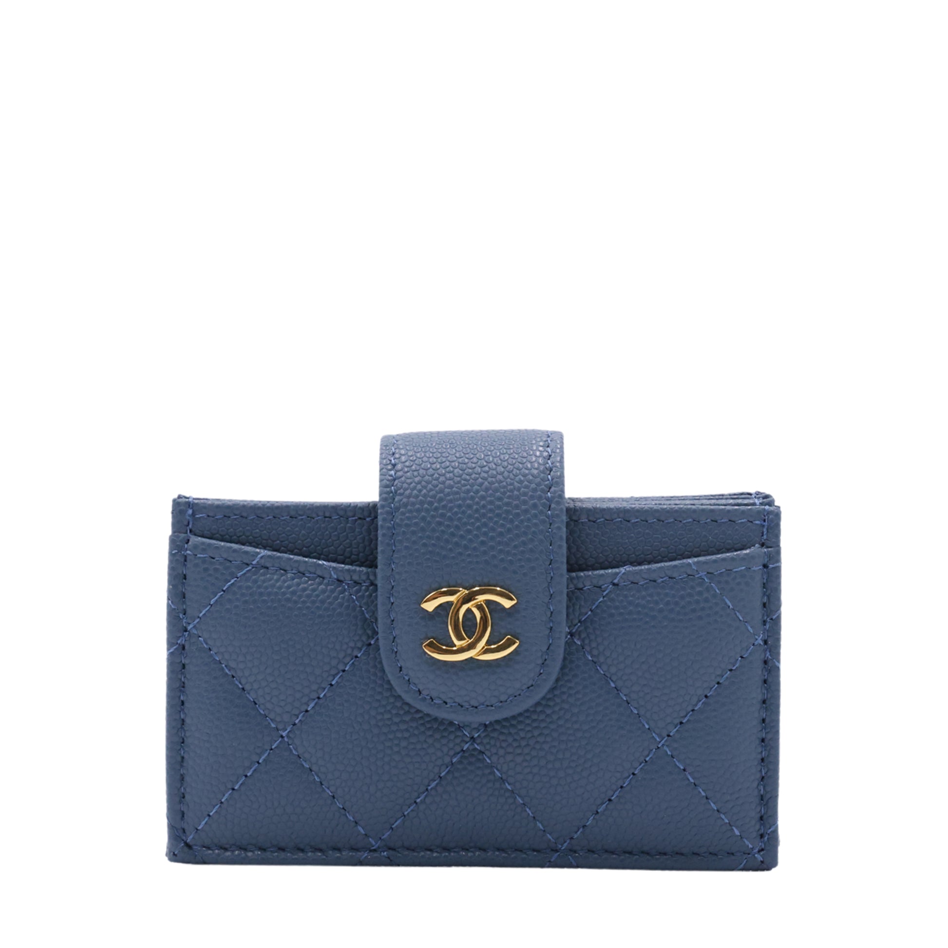 TARJETERO DE PIEL AZUL CON DETALLE DE LA MARCA EN DORADO