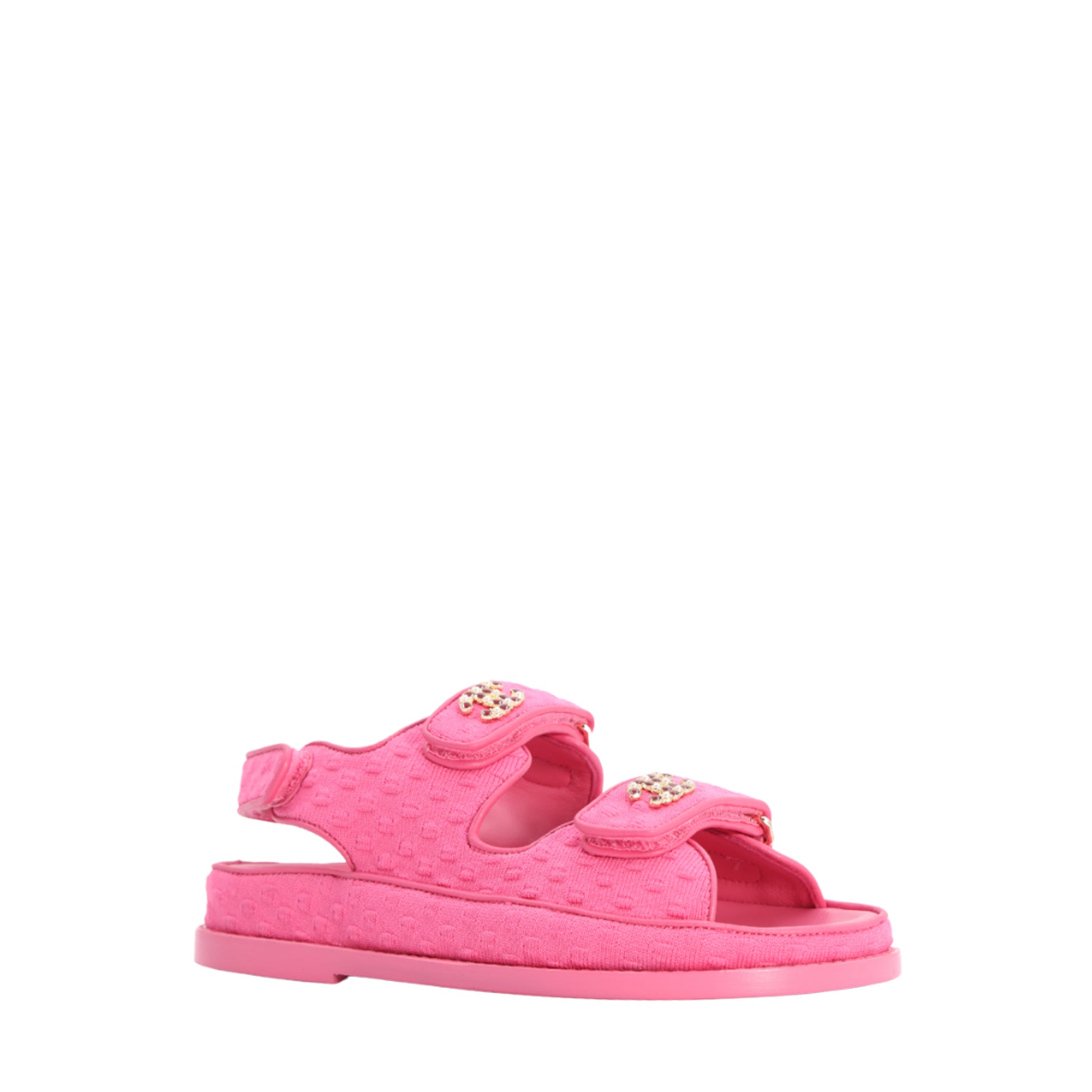 SANDALIAS DE PIEL FUCSIA CON DETALLES DE LA MARCA