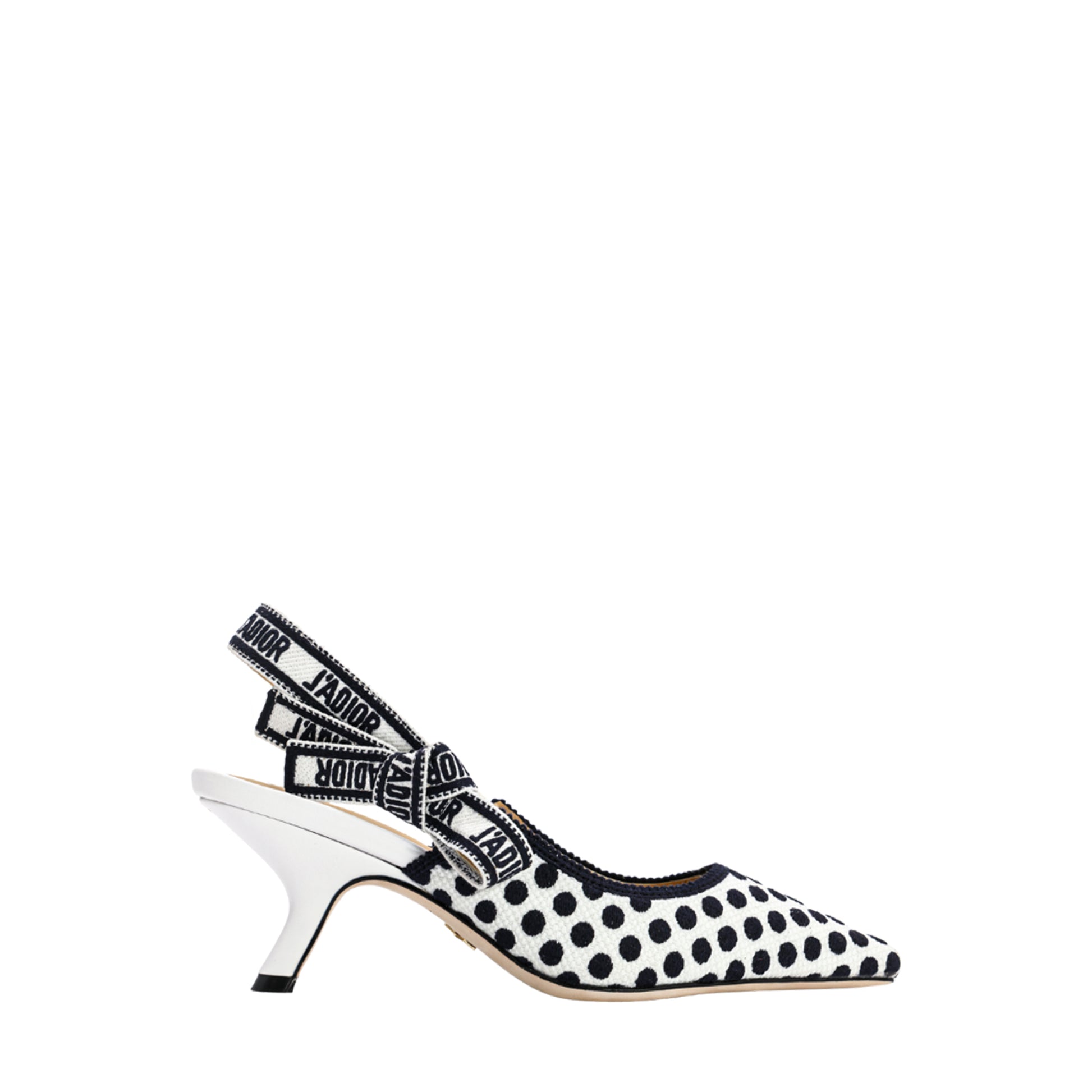 ZAPATO DE TELA DE LUNARES AZULES CON DETALLES CARACTERÍSTICOS DE LA MARCA