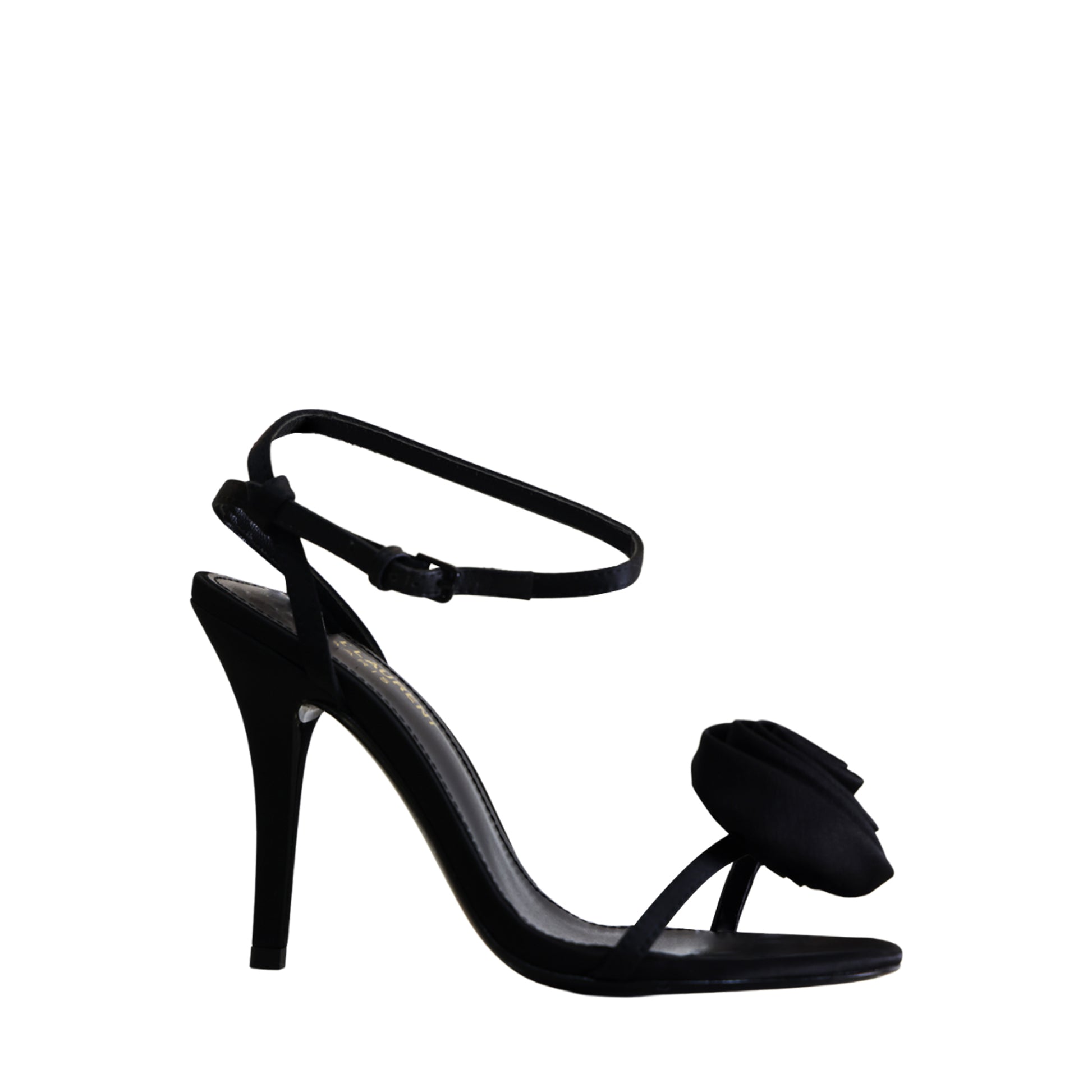 ZAPATOS DE TELA DE SATÉN NEGRA CON DETALLE DE ROSA