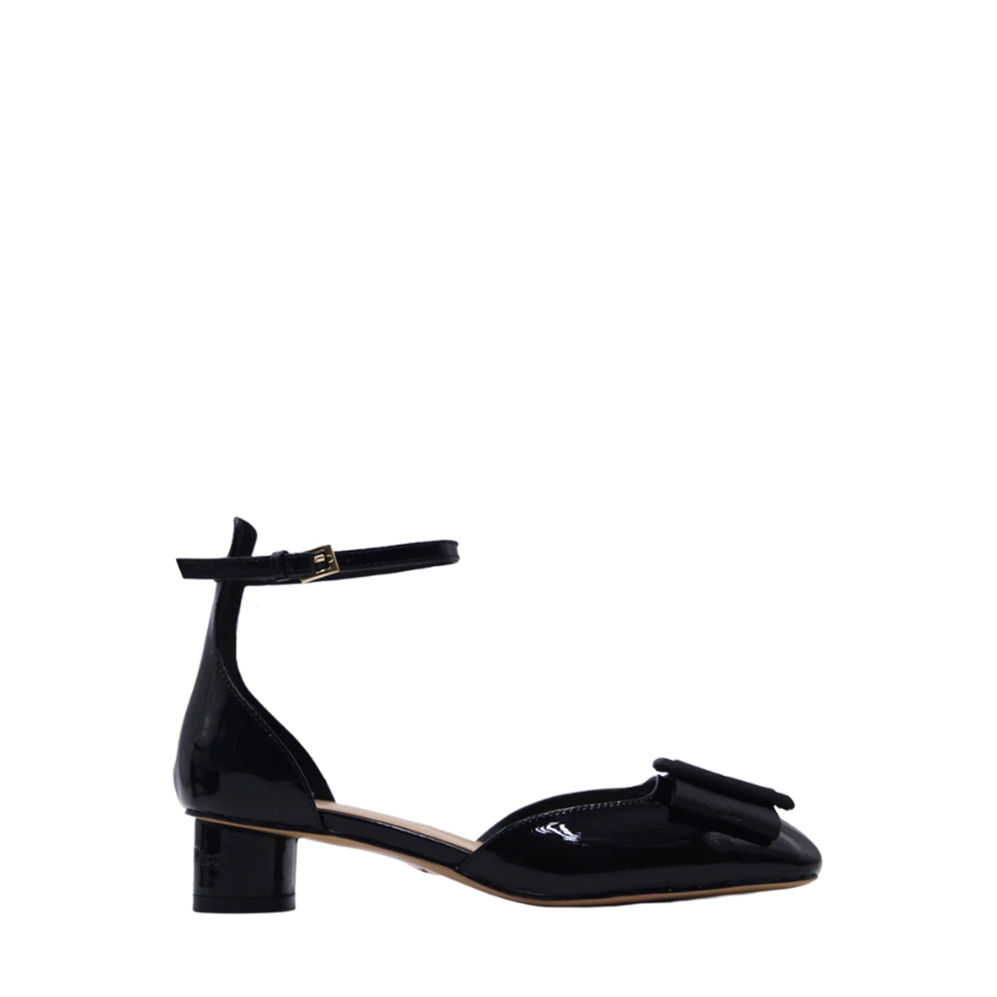 Dior Idylle es la unión perfecta de elegancia y modernidad. La piel de becerro lisa y negra lleva una hebilla asimétrica, y un lazo de grosgrain a tono. Detalles icónicos de la Maison, como la firma de Christian Dior Paris en relieve en el talón, le dan el toque final.