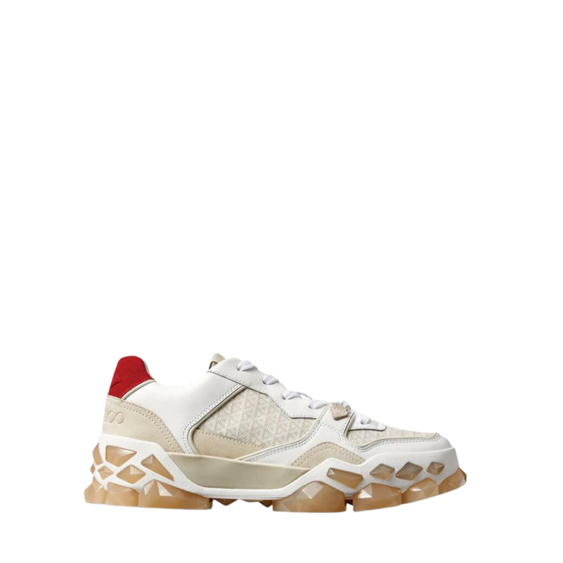 ZAPATOS DEPORTIVOS JIMMY CHOO MODELO ¨DIAMOND¨ INSPIRADOS EN UNA ROCA SUELA ATREVIDA, COMBINACION ENTRE CUERO Y TELA