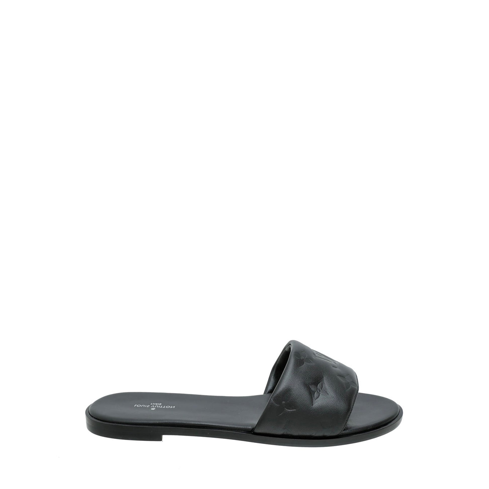SANDALIAS DE CUERO NEGRO REPUJADO CON MONOGRAMA DE LA MARCA