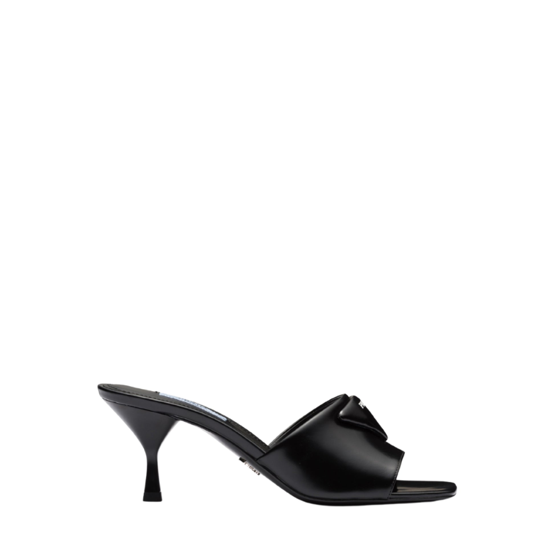 Los zapatos Prada Mules están fabricados con piel de becerro de alta calidad, lo que los hace resistentes y duraderos. Cuentan con el distintivo logotipo triangular de la marca Prada, ideal para quienes desean un toque de estilo.