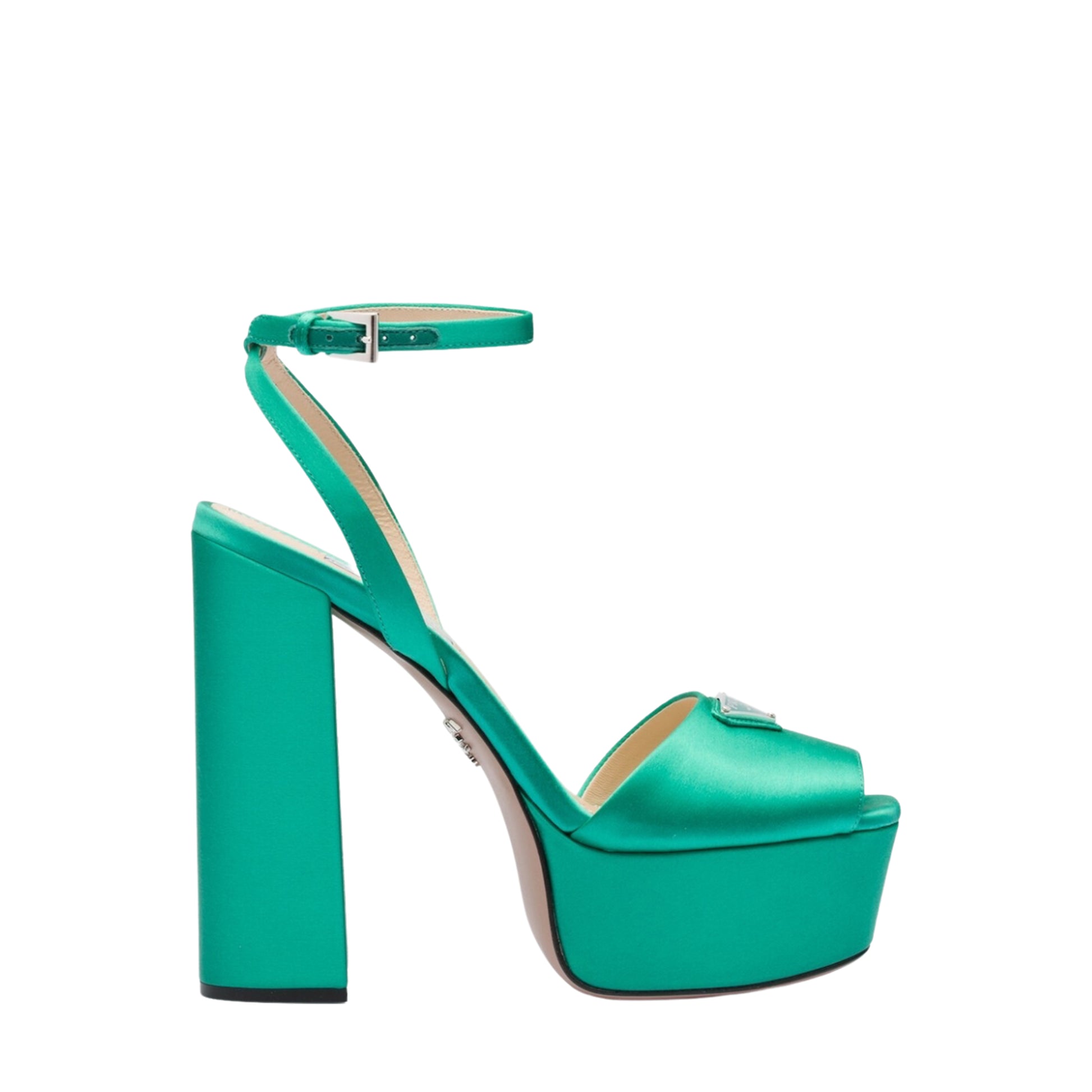 ZAPATOS DE SATÉN COLOR VERDE CON LOGOTIPO DE LA MARCA